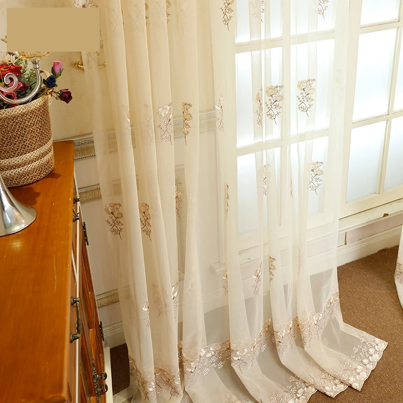 customized tulle high-end fashion modern embossed embroidery gauze beautiful white living room voil