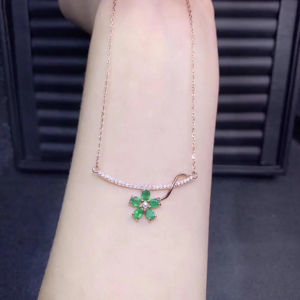 HOT Sale KJJEAXCMY boutique jewelry 925 sterling silver inlaid Natural emerald necklace Women's pendant supp