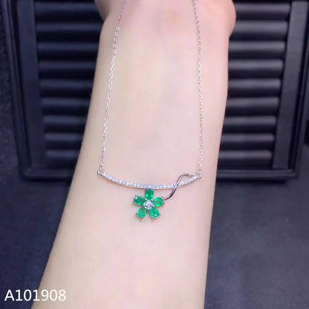 HIGH QUALITY KJJEAXCMY boutique jewelry 925 sterling silver inlaid Natural emerald necklace Women's pendant supp