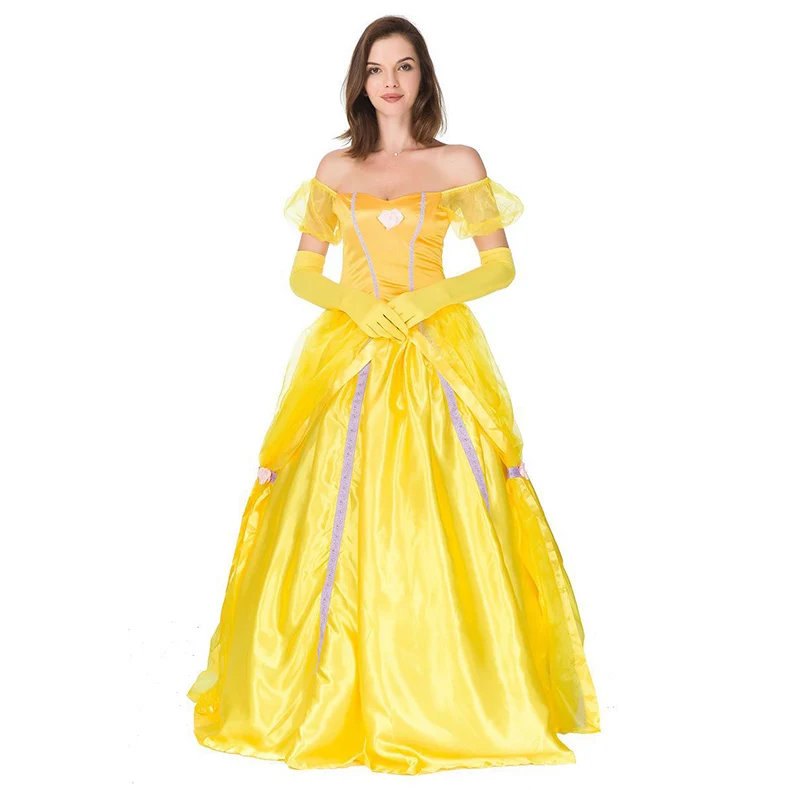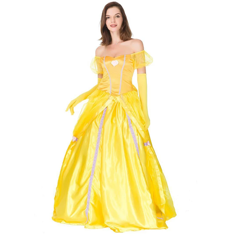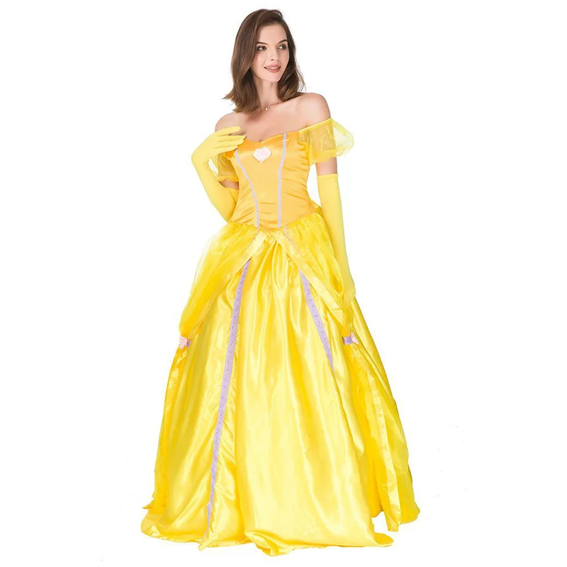 HOT SALE Yellow Victorian Fancy Bell Princess Dress Adult Cosplay Outfit Beauty And The Beast Costume Hallow