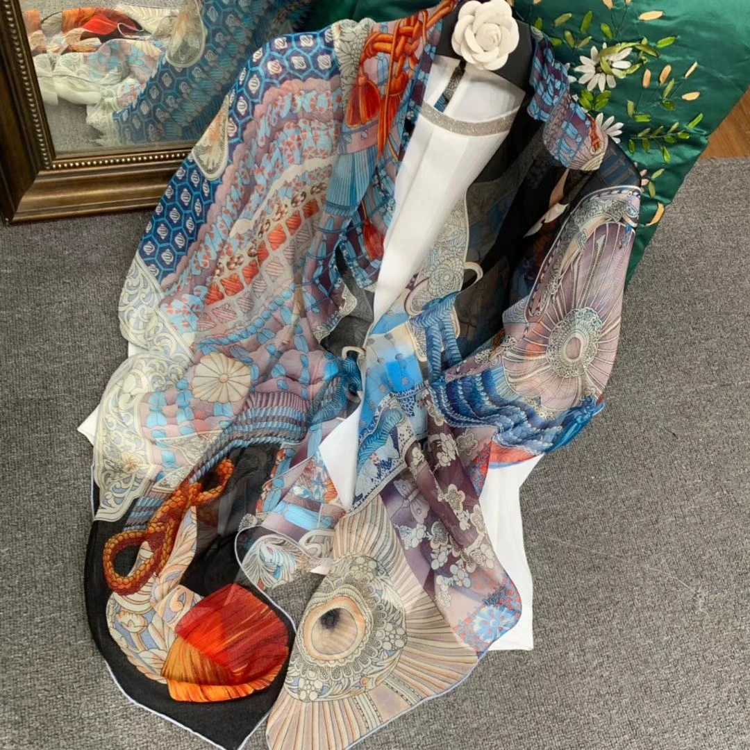 Beautiful Silk Chiffon Shawl Scarf Fashion Multi-function Beach Sunscreen Coat Scarves Office Air C