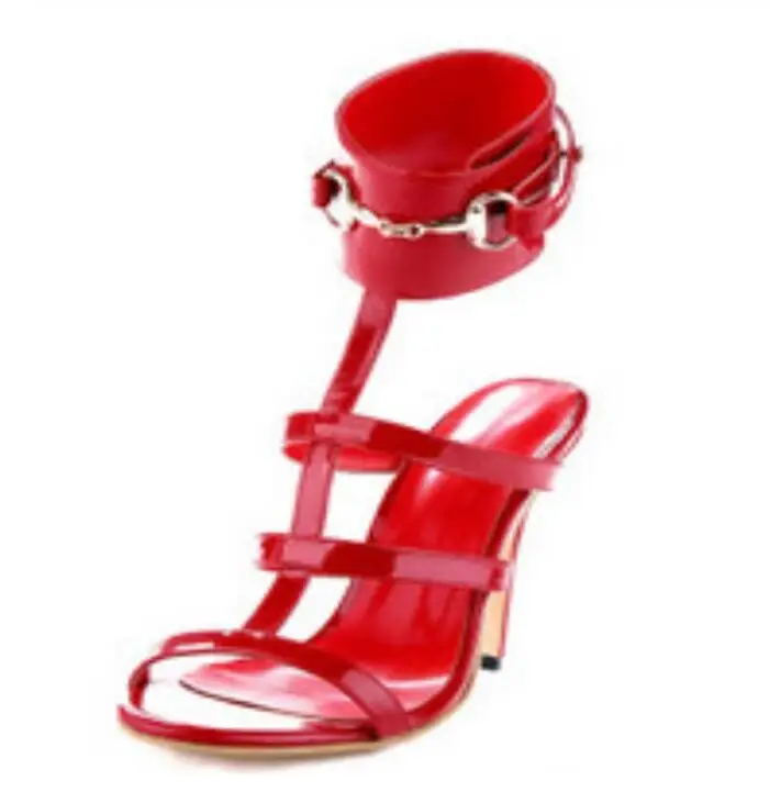 TOP Kaeve shoesBeautiful fashion free shipping leather fabric gold chain decoration 11 cm high heel san